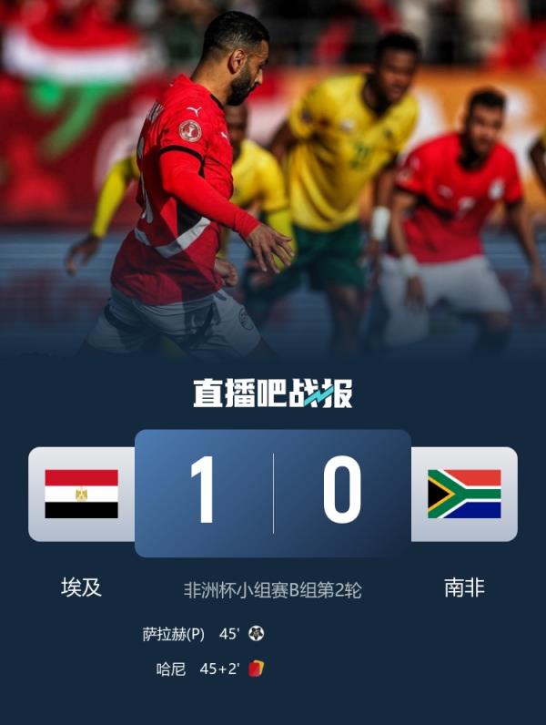 12月27日讯 非洲杯小组赛B组第二轮,埃及1-0战胜南非。
